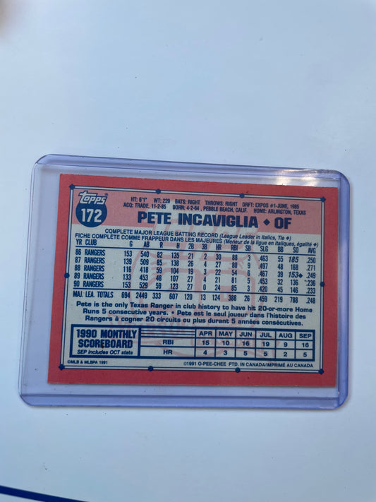 Pete Incaviglia Texas Rangers 1991 Topps 40 years of Baseball