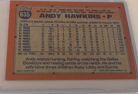 Andy Hawkins New York Yankees 1991 Topps 40 years of baseball