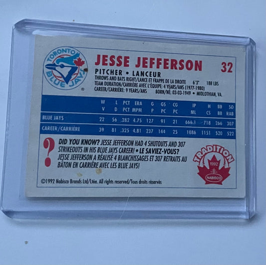 Jesse Jefferson Toronto Blue Jays Tradition 1992 Nabisco